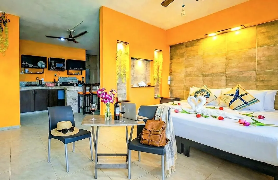 وتقع الشقة على بُعد 15 دقيقة تقريبًا بالسيارة من بلايا ديل كارمن.